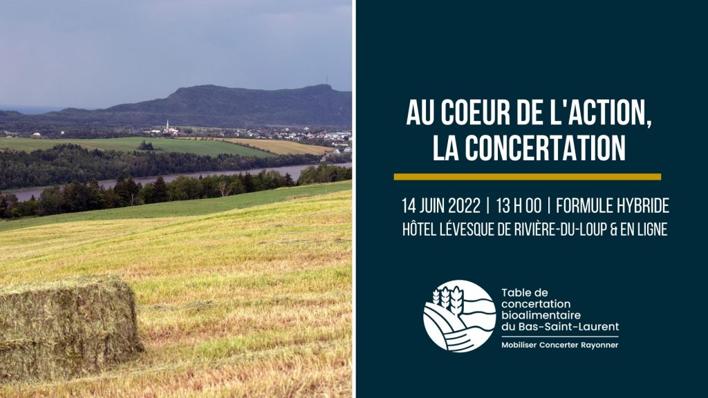 La 25e AGA de la Table de concertation bioalimentaire du Bas-Saint-Laurent se tiendra le 14 juin prochain à l’Hôtel Lévesque de Rivière-du-Loup (171 Rue Fraser, Rivière-du-Loup, QC G5R 1E2).
